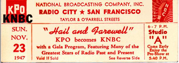 This is a ticket to the live broadcast "Hail and Farewell" in 1947,